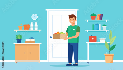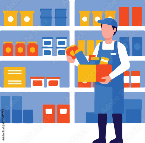 Vector illustration of cook male preparing sauce. Restaurant kitchen room interior. Flat style design.