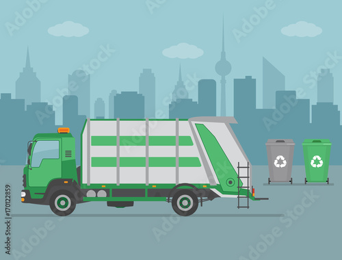 Vector illustration of delivery truck. Freight transportation, delivery service concept flat style design element.