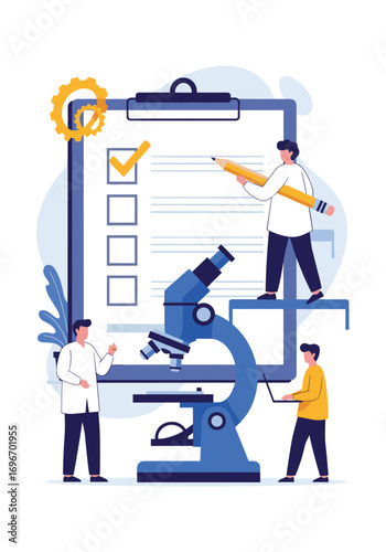 Dental medicine concept vector illustration in flat style. Dental clinic interior, equipment. Dentist is working with patient.