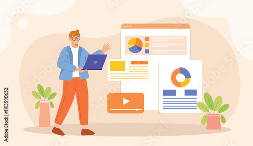 Vector illustration of detective working at office. Detective agency interior. Flat style design.