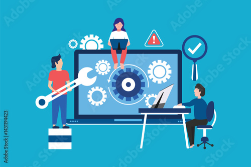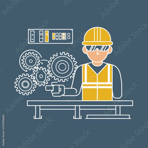 Vector illustration of young man playing drums. Drummer flat style design element.