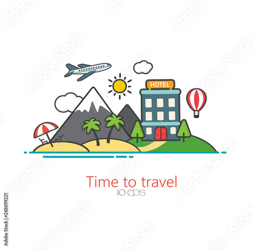 Vector illustration of father, mother with their daughter walking in the park. Family concept design element in flat style.