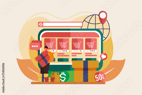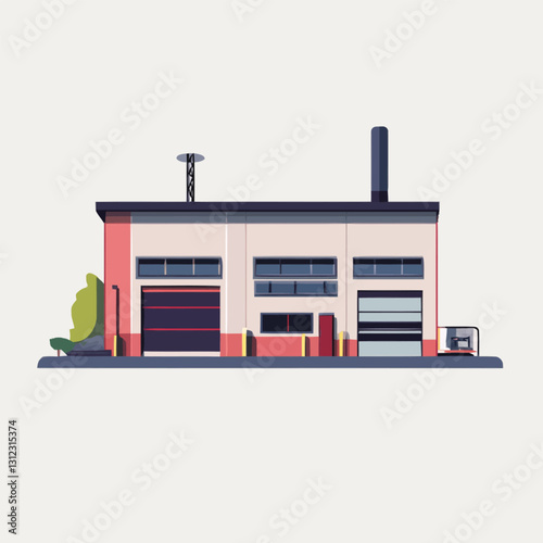 Vector illustration of Fire department in flat style. Fire service, running firefighters and fire truck. Red fire engine and firemen in uniform. Fire brigade. Resque service.