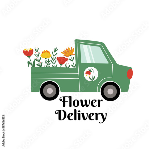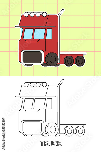 Vector illustration of fire engine. Fire truck and firefighter in fire protection suit and helmet design element in flat style.