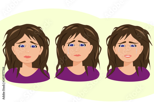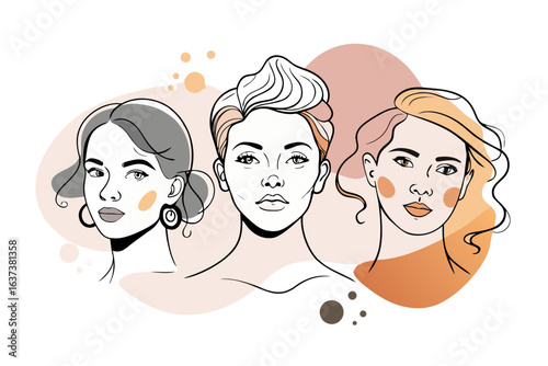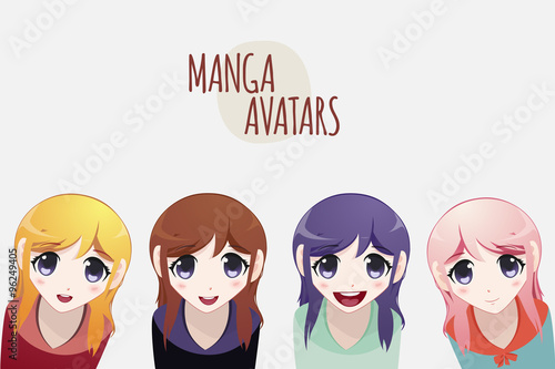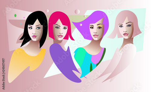 Vector illustration of girls faces with different kinds of hairstyles, hair colors. Beautiful young women with dyed hair.