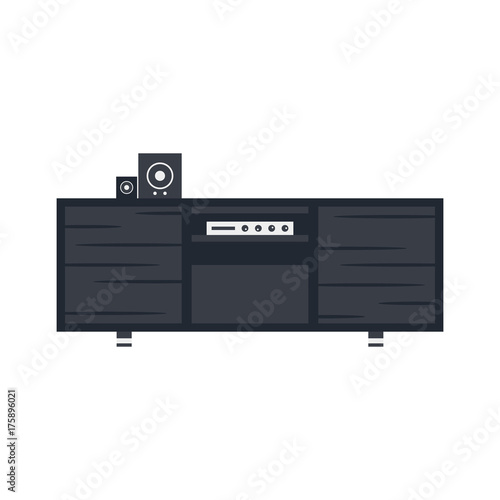 Vector illustration of kitchen interior with kitchen appliances in flat style. Microwave, toaster, mixer, blender, coffee maker, kettle, furniture.