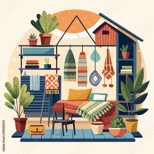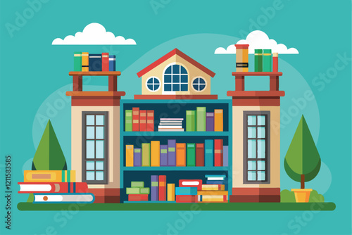 Vector illustration of school locker. Schoolgirl standing near the locker with opened door. School education concept design element in flat style.