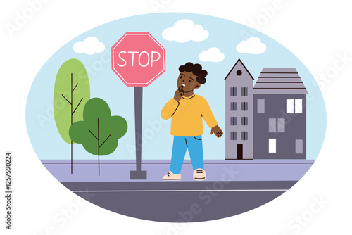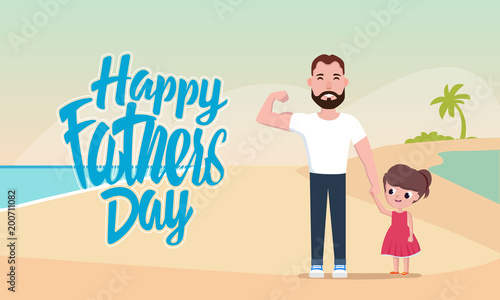 Disabled man with artificial leg prosthesis walking with his daughter in park and eating ice cream. Vector flat style design illustration.
