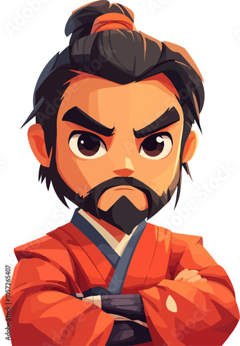 Vector illustration of man with cogwheels on right part of his face in retro pop art comic style. Calm, unemotional face.