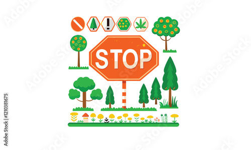 Vector illustration of mother with her son eating ice cream cones. Little boy walking dog. Cartoon characters. Amusement park, recreation concept design element in flat style.