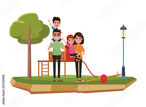 Vector illustration of mother swinging her son in the playground. Family concept design element in flat style.