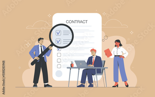 Vector illustration of postal worker standing next to shelves with parcels, cardboard boxes ready for dispatching. Packer concept design element in flat style.