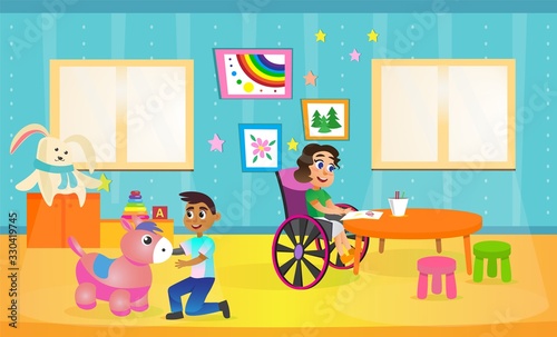 Vector illustration of parents sitting in armchairs. Man is reading newspaper, woman is knitting. Living room interior. Family concept design element in flat style.