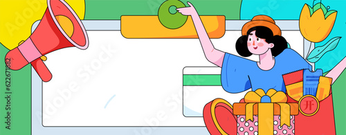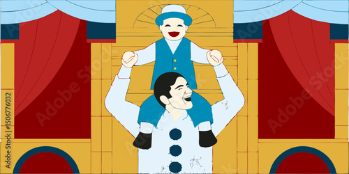 Vector illustration of Pierrot with picture frame and speech bubble. The man in the costume of Pierrot in retro pop art comic style.