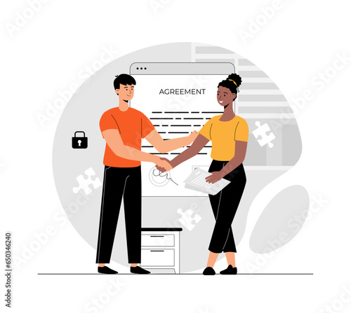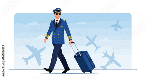 Vector illustration of pilot and stewardess with luggage. Airline staff, cabin crew flat style design element, icon isolated on white background.
