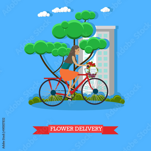 Vector illustration of policeman with city bicycle. Police inspector patrolling street design element in flat style.