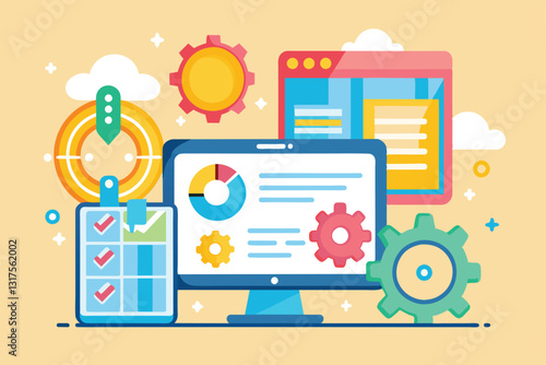 Vector illustration of robot coffee. Technology concept design element, icon in flat style.