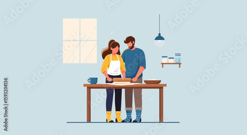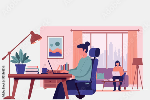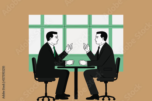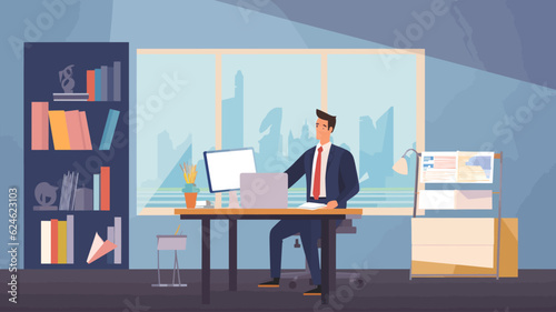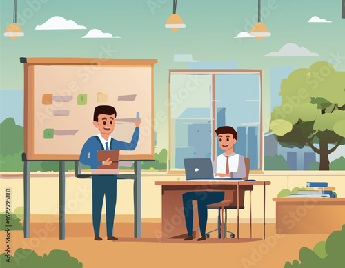 Vector illustration of schoolboy and schoolgirl sitting at the desks in classroom at the lesson. School concept design element in flat style.