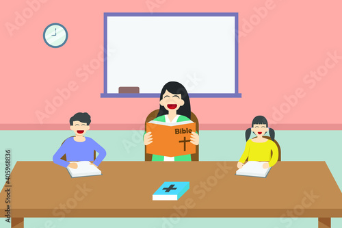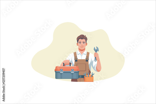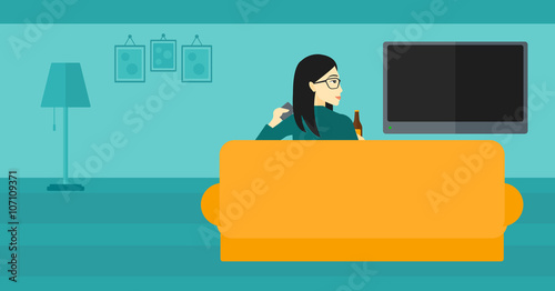 Vector illustration of young woman seamstress sewing on treadle sewing machine. Atelier, tailoring shop, fashion salon concept design element in flat style.