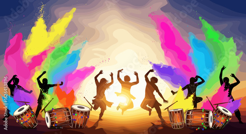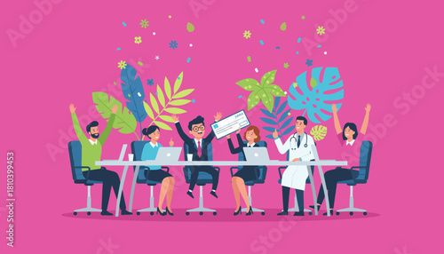 Vector illustration of symphony orchestra playing music on stage of concert hall. Conductor, violinist, bassist, trumpeter, flutist and audience flat style design elements.