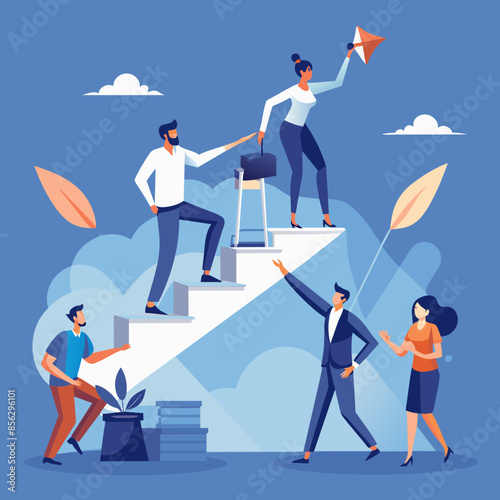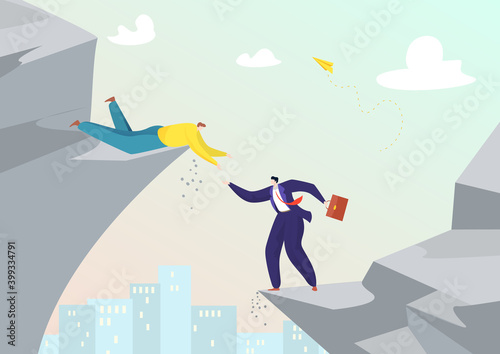 Vector illustration of businessmen with briefcases walking on tightrope like funambulist. Electric light bulbs symbol of new ideas. Business risk, success, failure concept design element in flat style