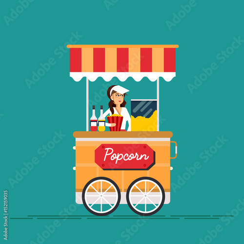 Vector illustration of volunteer young woman helping elderly man with food. Voluntary organizations services concept design element in flat style.
