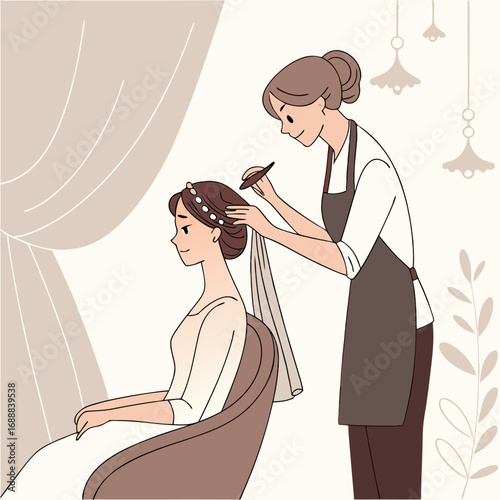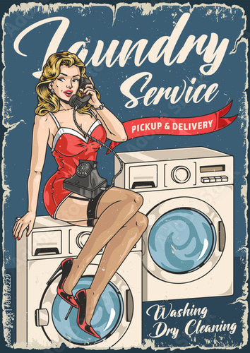 Vector illustration of beautiful woman with long wavy hair in swimsuit. Beauty and spa salon concept in retro pop art comic style.