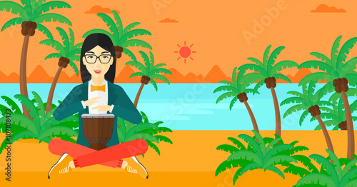 Vector illustration of musician flutist playing a flute woodwind musical instrument. Young woman flautist flat style design element.