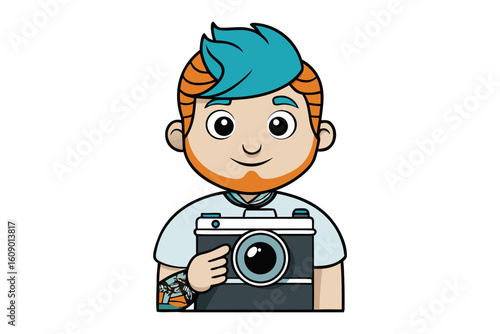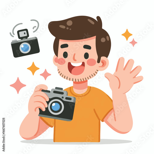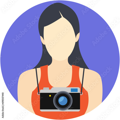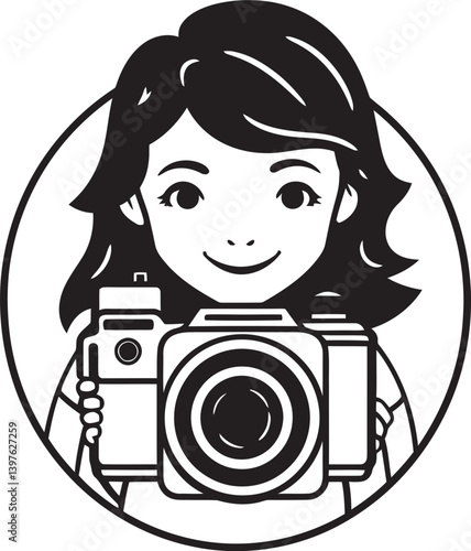 Vector illustration of young woman photographer taking photo, winking and showing OK hand sign in retro pop art comic style.