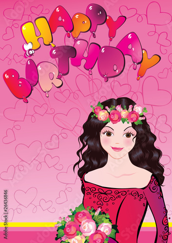 Vector illustration of beautiful woman with bouquet of red roses in retro pop art comic style. Speech bubble.
