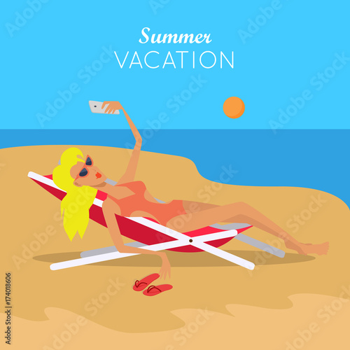 Vector illustration of young man and woman playing frisbee on the beach. Summer vacation, outdoor games concept design element in flat style.