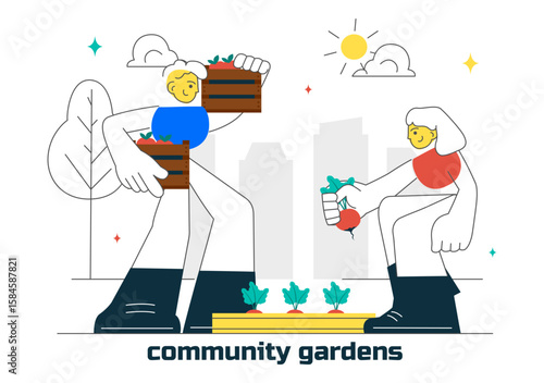 Vector illustration of young man and woman skating at ice rink. Cartoon characters. Winter sports and activities concept design element in flat style.