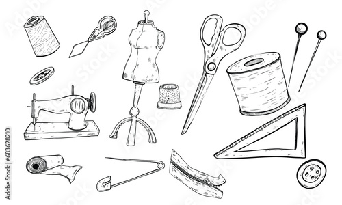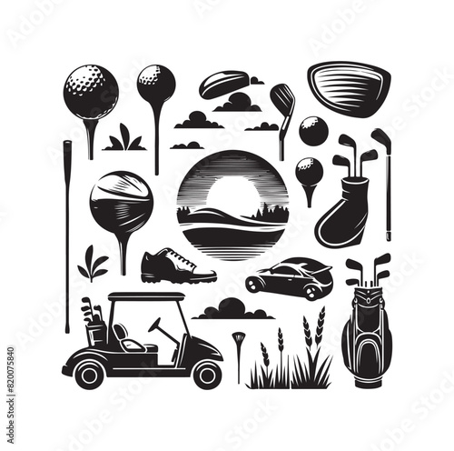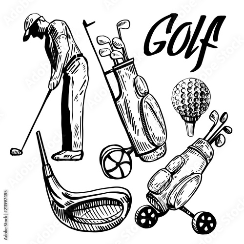Golf icon set. Vector ink hand drawn illustration isolated on white background.