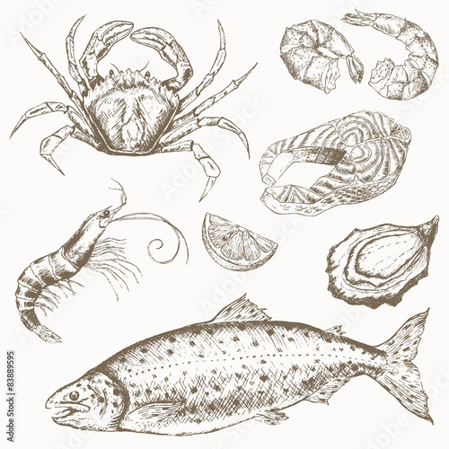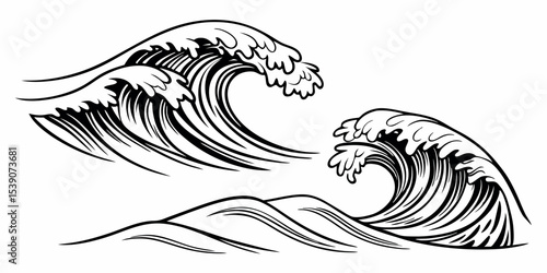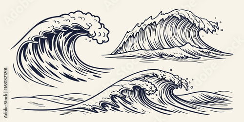 Waves set. Vector ink hand drawn illustration isolated on white background.