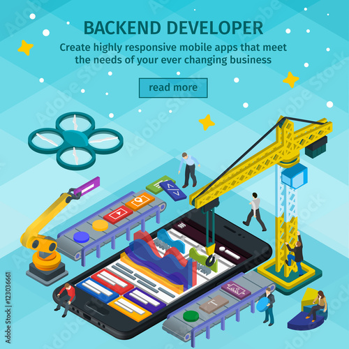 Initial coin offering mechanism of selling newly issued tokens in exchange for established cryptocurrencies. Vector isometric tower crane and trucks with ico tokens and bitcoin litecoin ether coins.