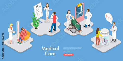 Home and service robots vector isometric poster, banner template set. Medical, household, security, hotel and restaurant service robots design elements.