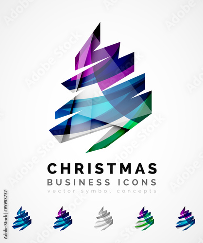 Layered paper cut snowflake, christmas tree, deer and Santa Claus in sleigh with reindeers silhouettes, vector illustration isolated on white background. Merry Christmas and Happy New Year symbol set.