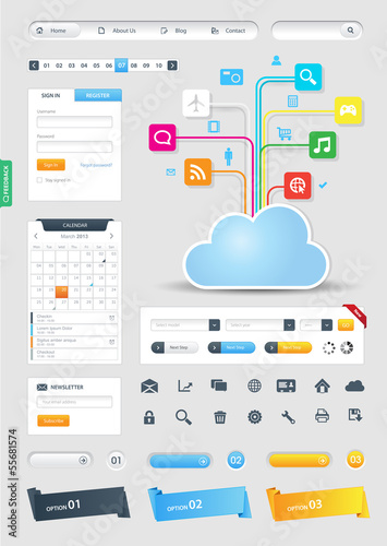 Content management and services template set. Vector thin line art flat style design elements, icons for website banners and printed materials.