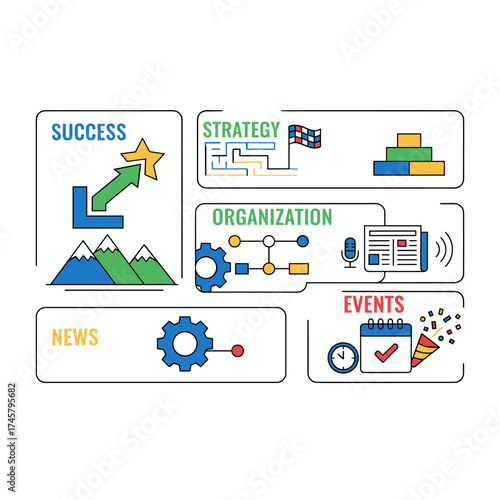 Design trend and project management template set. Vector thin line art flat style design elements, icons for website banners and printed materials.