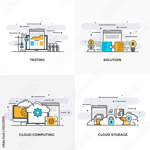 Download and protection template set. Vector thin line art flat style design elements, icons for website banners and printed materials.