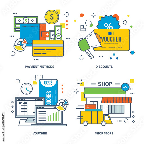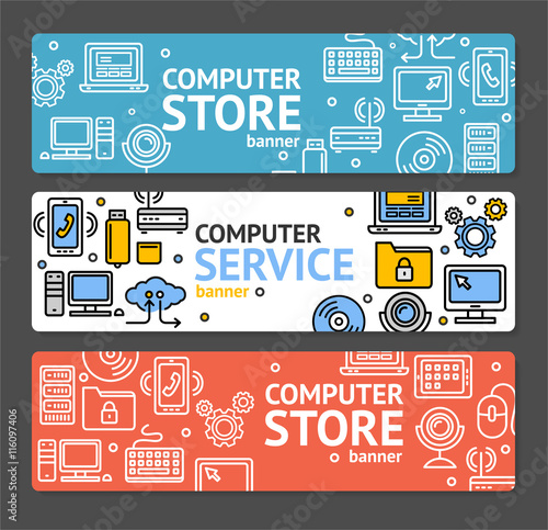 Download and protection template set. Vector thin line art flat style design elements, icons for website banners and printed materials.