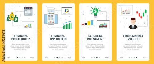 Vector set of vertical banners with Education apps, Online library, Creativity, Audio courses, Webinar website and mobile app templates. Modern thin line flat style design.