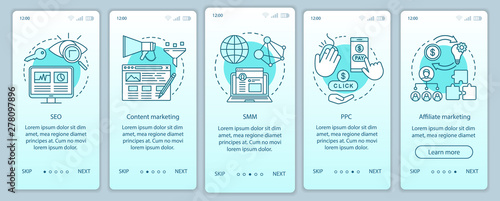 Vector set of vertical banners with Lifebuoy, Cold drink, Sand castle, Sea voyage, Surfing website and mobile app templates. Modern thin line flat style design.