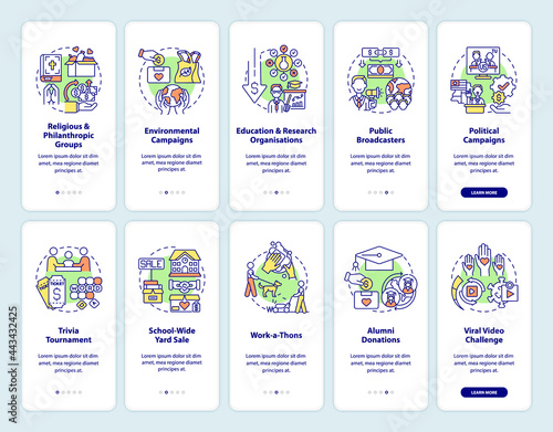 Vector set of mobile app onboarding screens. Travel agency, Review, Vacation, All inclusive, Tourist guide, Travel insurance web templates and banners. Thin line art flat icons for website menu.