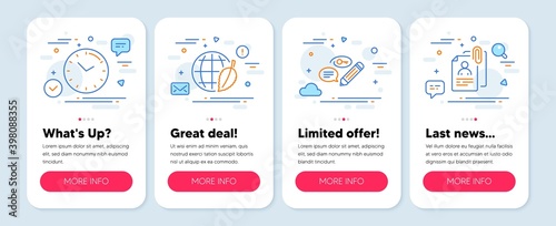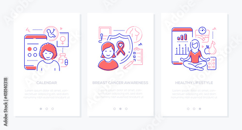 Vector set of mobile app onboarding screens. Team Leader, Business Plan, Target Audience, Teamwork, Partner, Career web templates and banners. Thin line art style design icons for website menu.