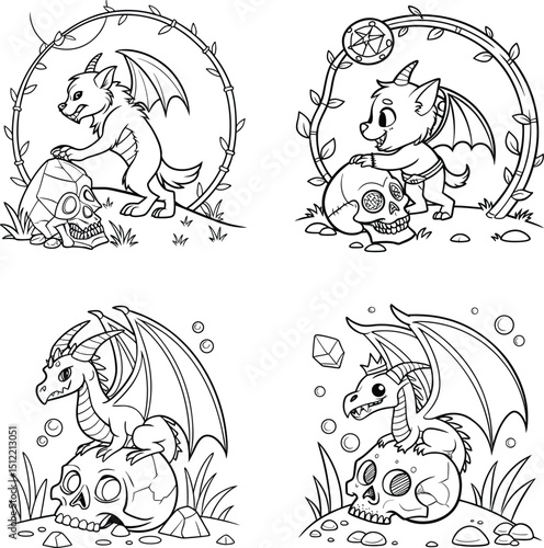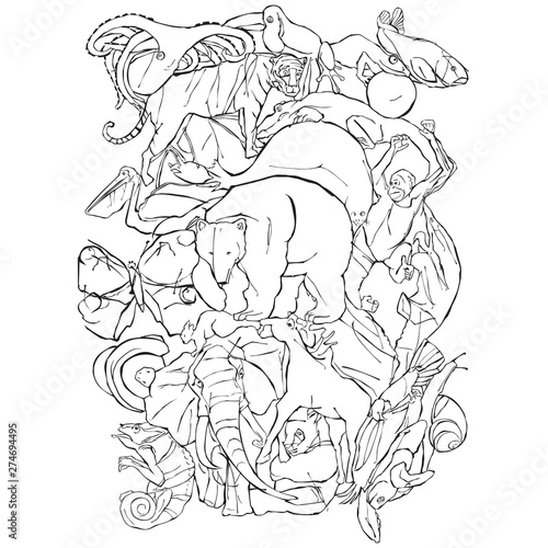 Magical unicorn tattoo or t-shirt print design. Vector sketch unicorn head combined with night sky, rainbow, clouds, planets.
