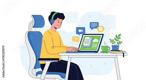 Vector man vip passenger of business class inside airplane illustration. Businessman freelancer working on laptop online drinking wine eating pineapple. Comfort aircraft travel concept