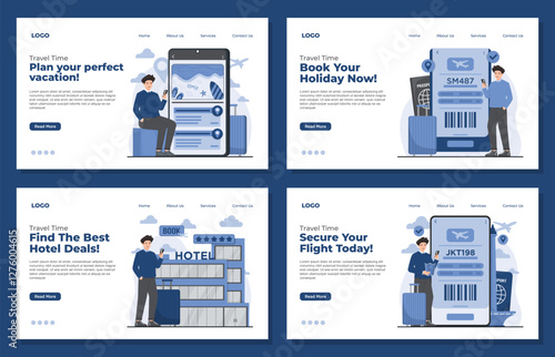 Vector set of banners with Attention, Interest, Desire and Action concept web templates. Modern thin line flat design symbols, icons for web, printing.