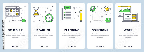 Vector set of market vertical banners. Trading, Diagrams, Analytics, Solutions, Infographic website templates. Modern thin line flat style design.