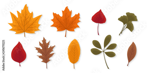 Paper cut autumn leaves. Vector illustration of beautiful multicolor maple, oak, rowan, birch and other leaves isolated on white background.